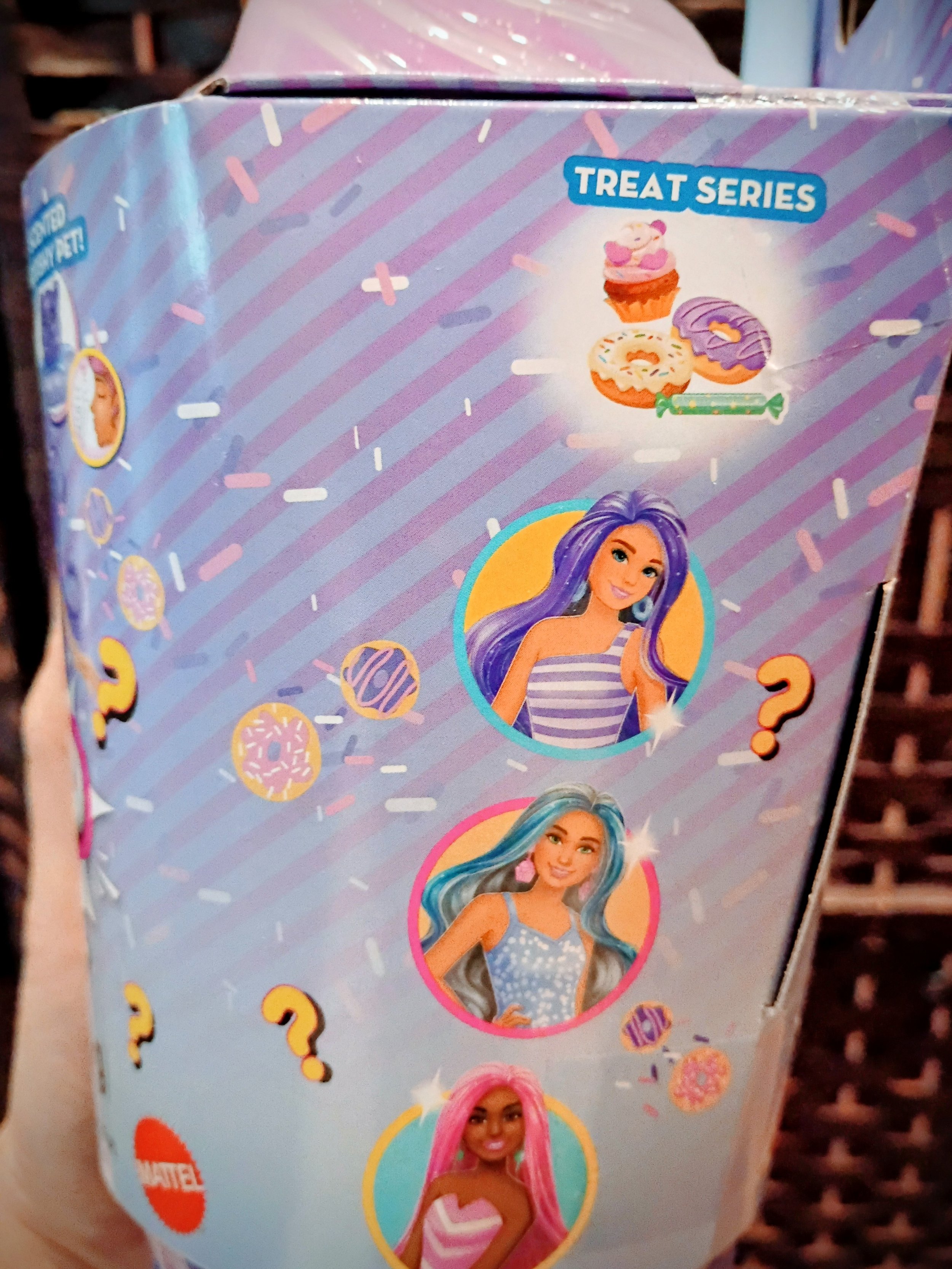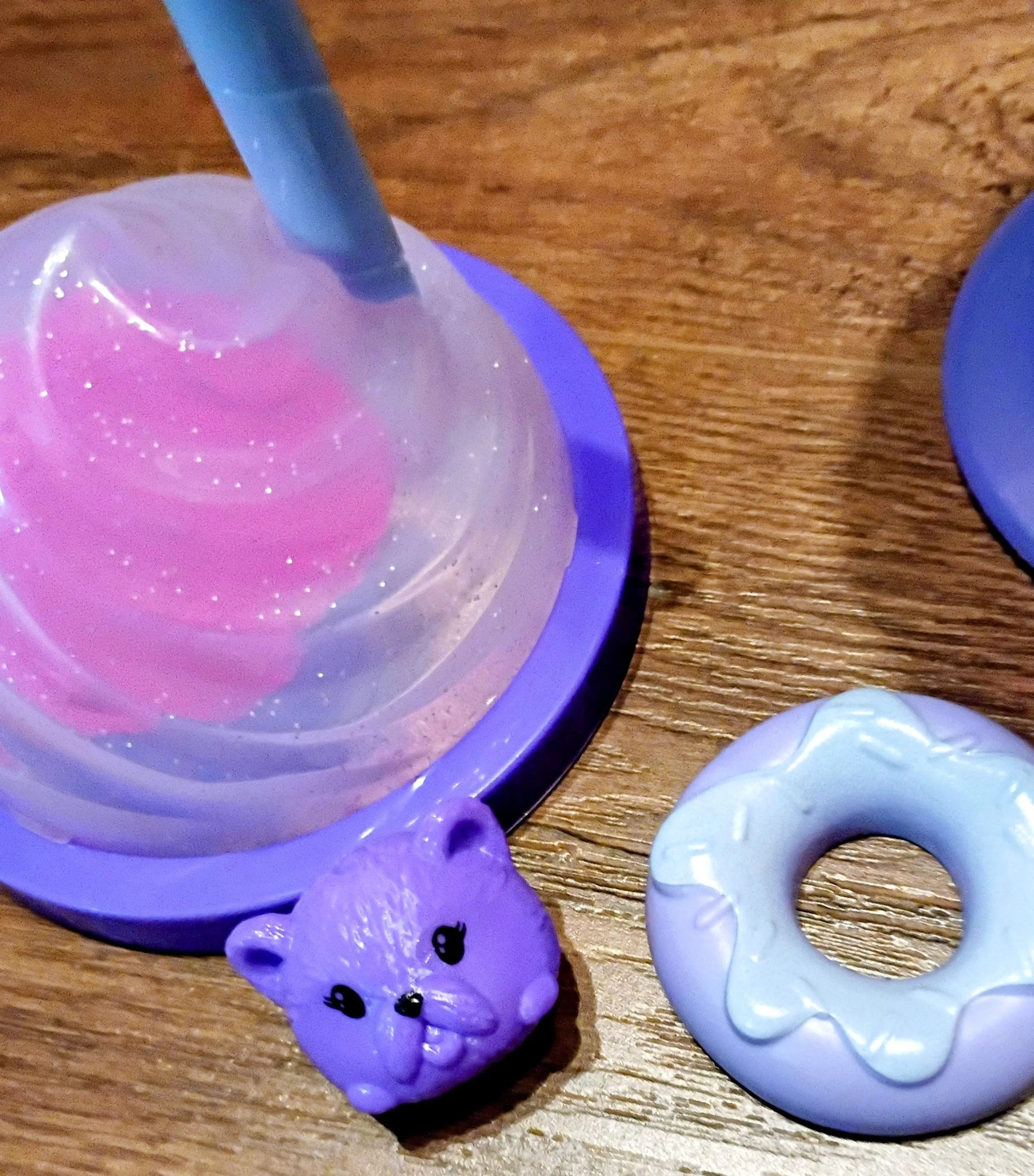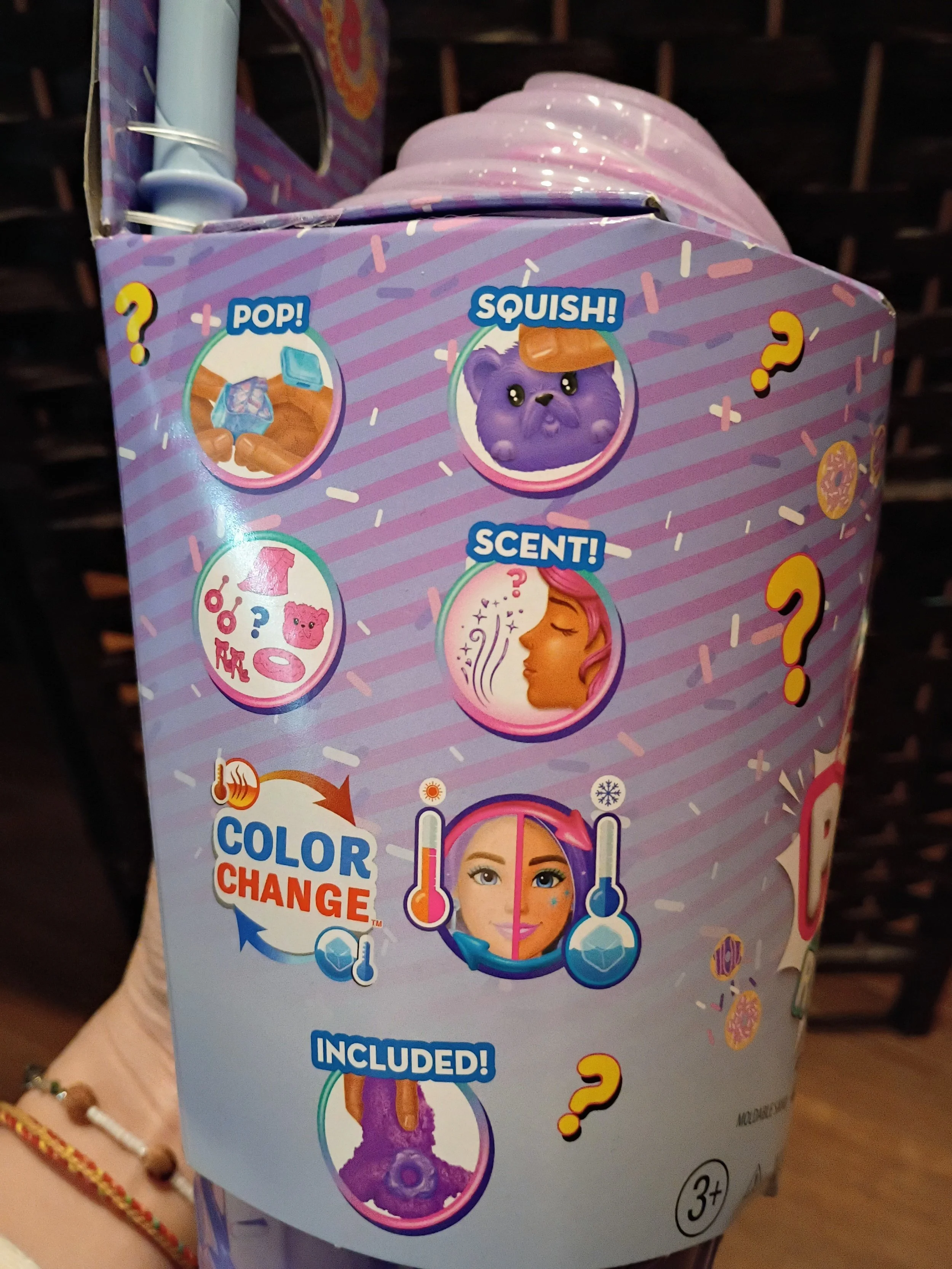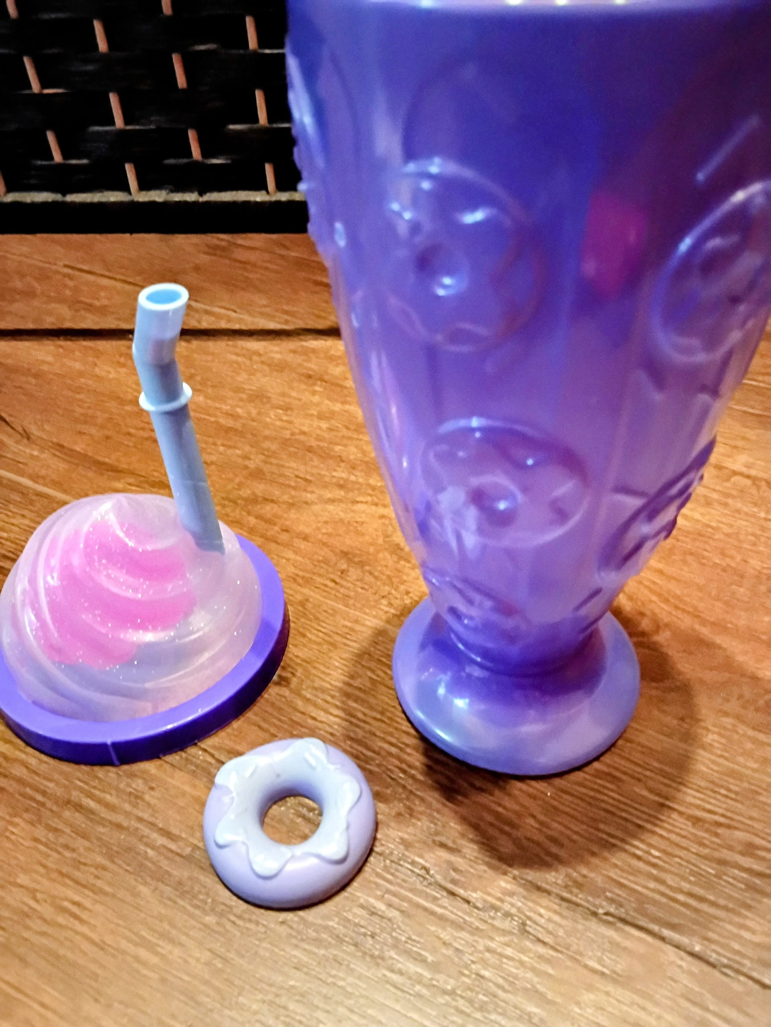 包装是一个紫色甜甜圈装饰的杯子
