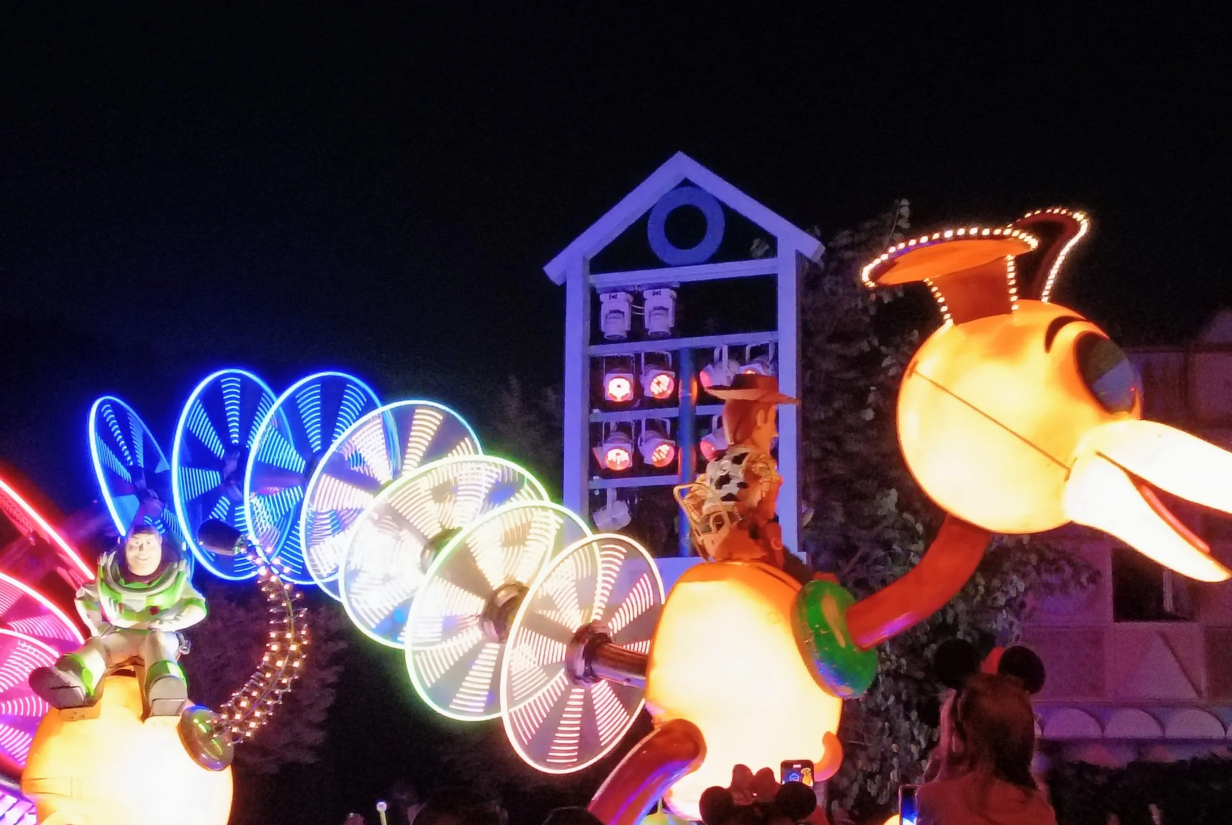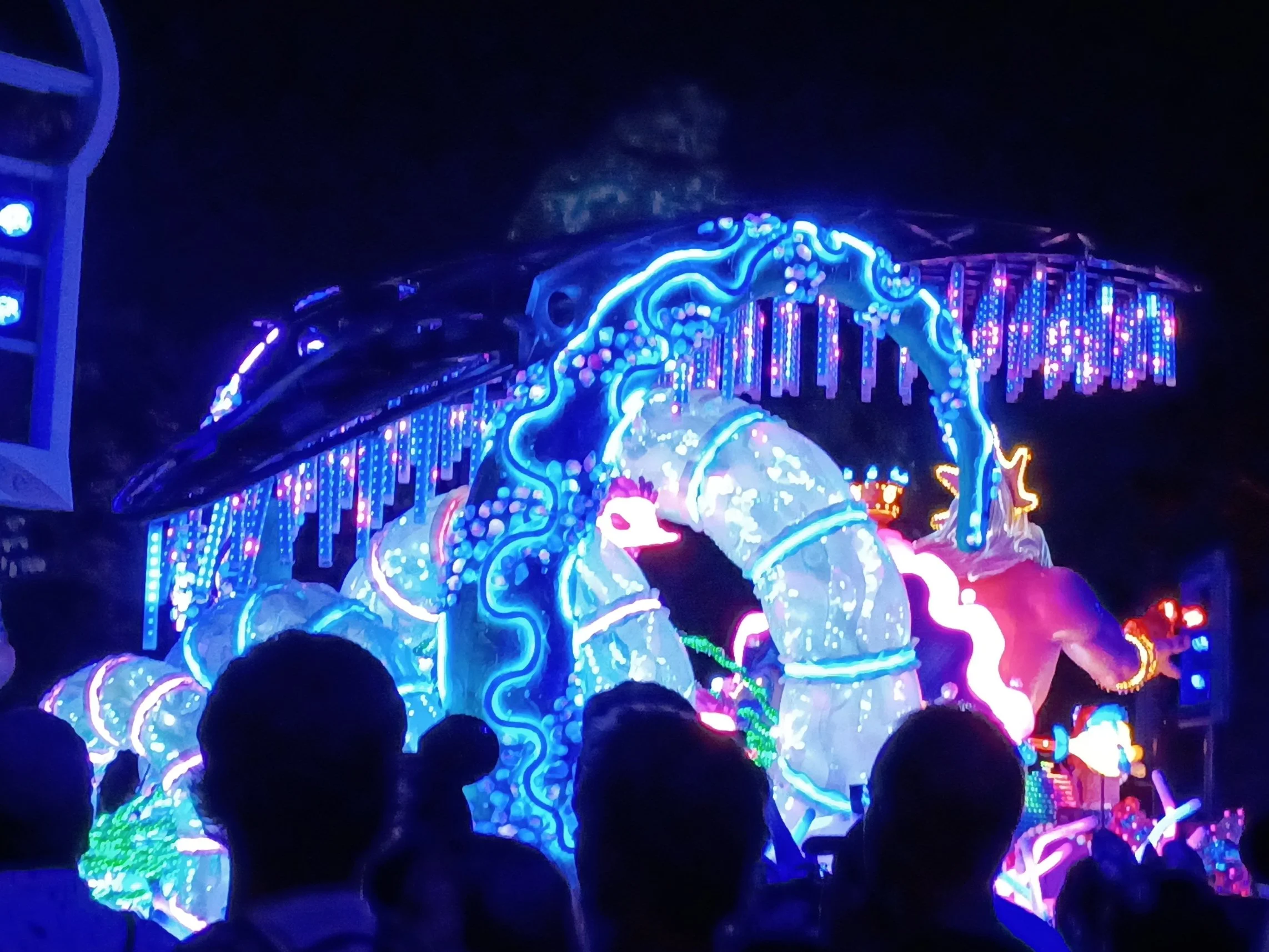 满载而归正好看见在封路,不远处游行缓缓走来,都是最有名的IP,包括阿拉丁,美女与野兽,冰雪奇缘,汽车总动员,玩具总动员等等