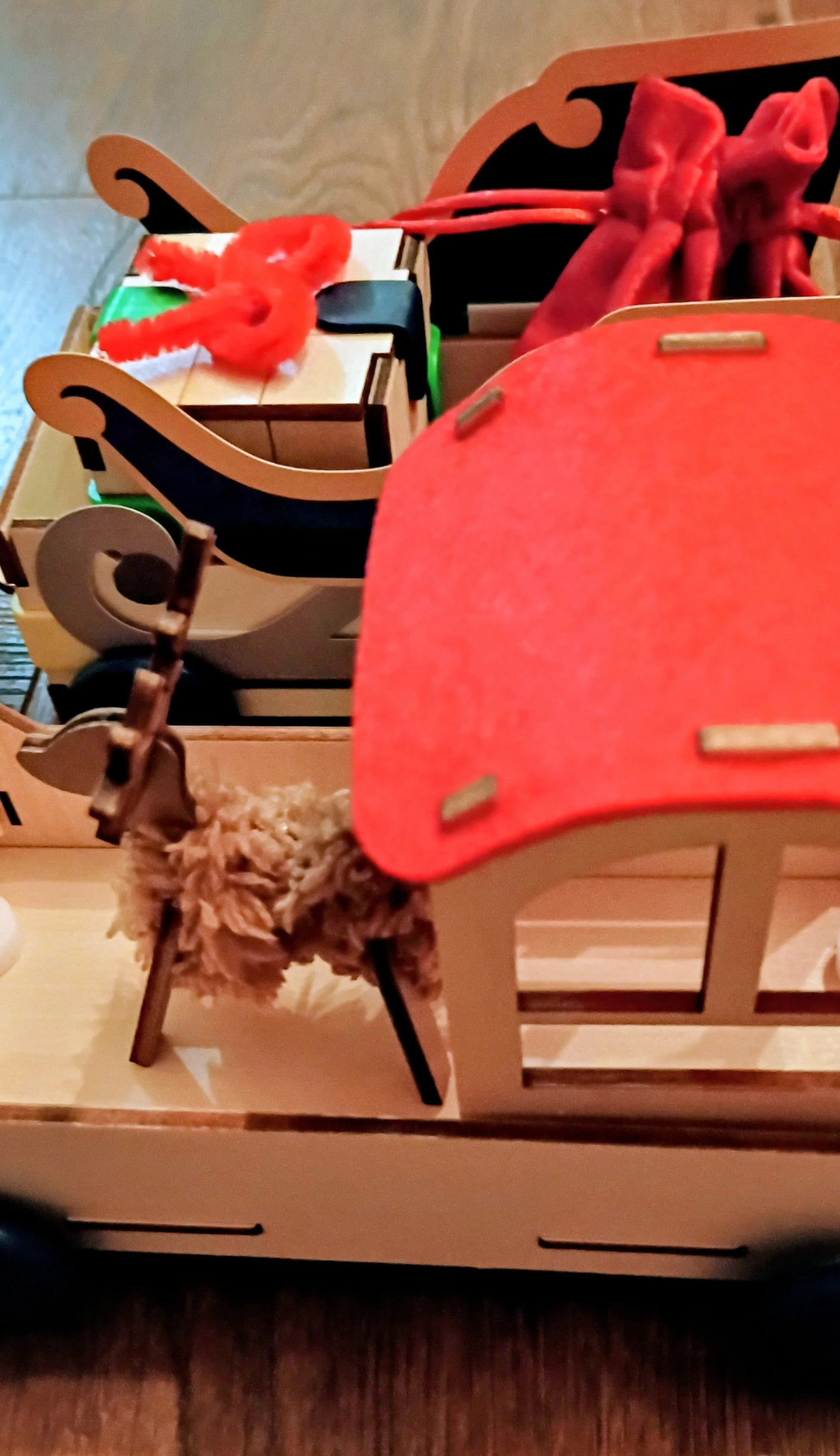 第二个运货小车车也组装完毕,正好用第九天的小礼物—鹿来装饰
