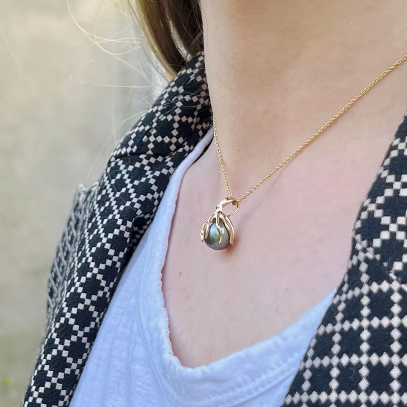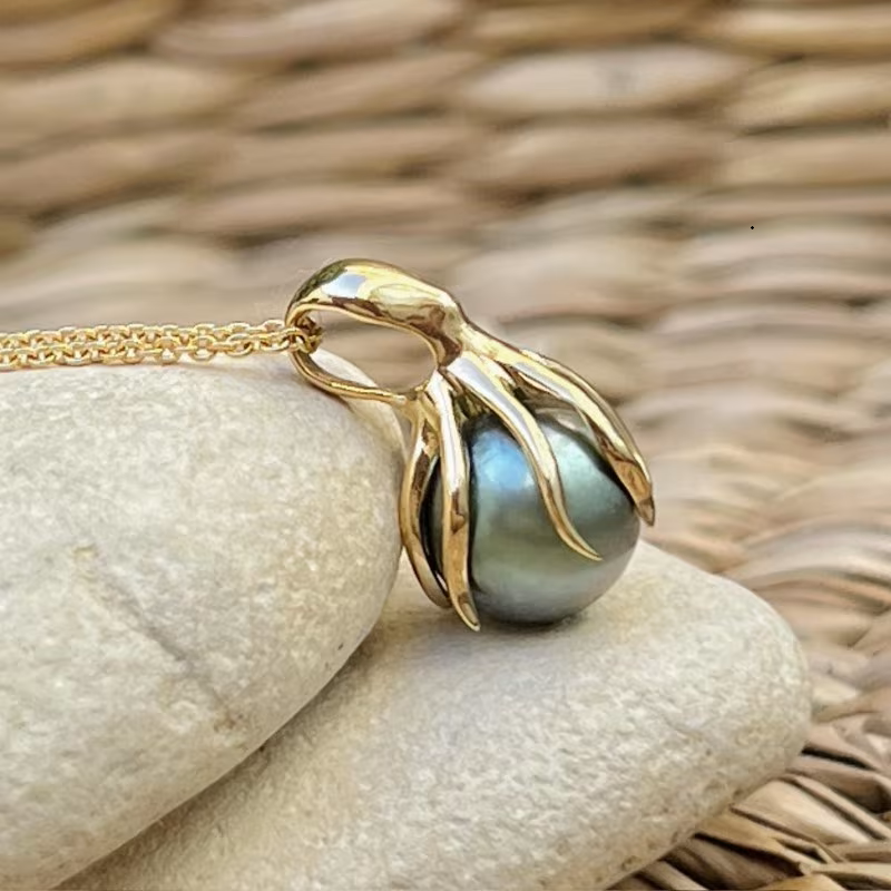 昨晚在淘珍珠意外发现的设计-章鱼🐙触须抓住一颗大溪地黑珍珠 尺寸也很巧合为9.85mm