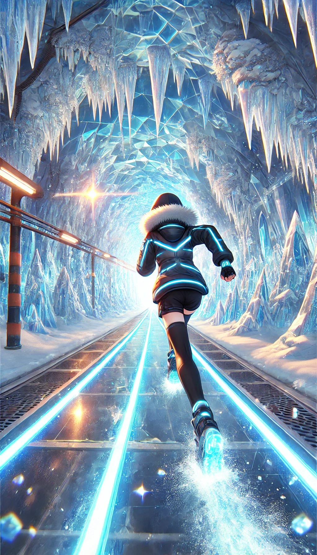冰川区:半透明的蓝色冰面反射极光,碎裂冰层会突然塌陷。